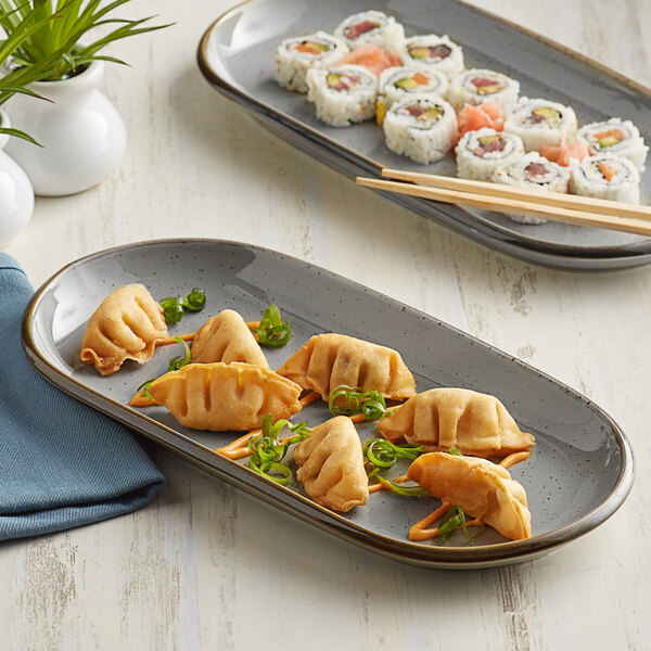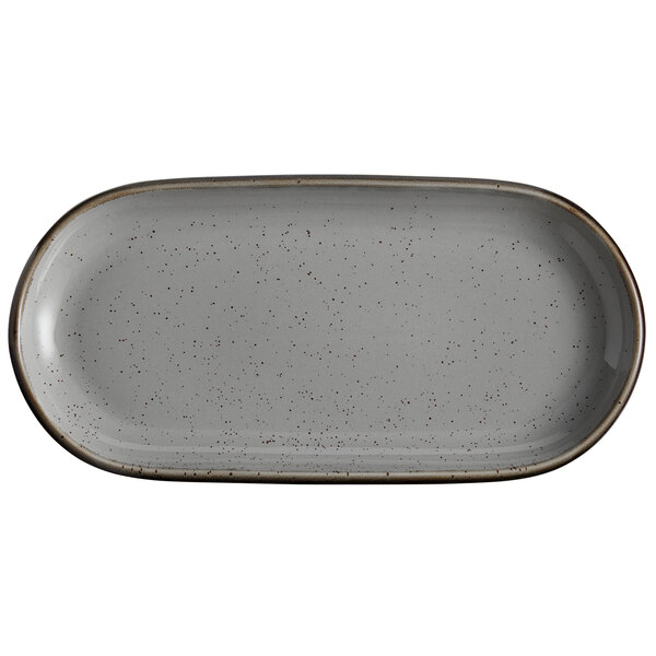 Acopa Keystone 14″ x 6 3/4″ Granite Gray Stoneware Oblong Coupe Platter – 6/Case