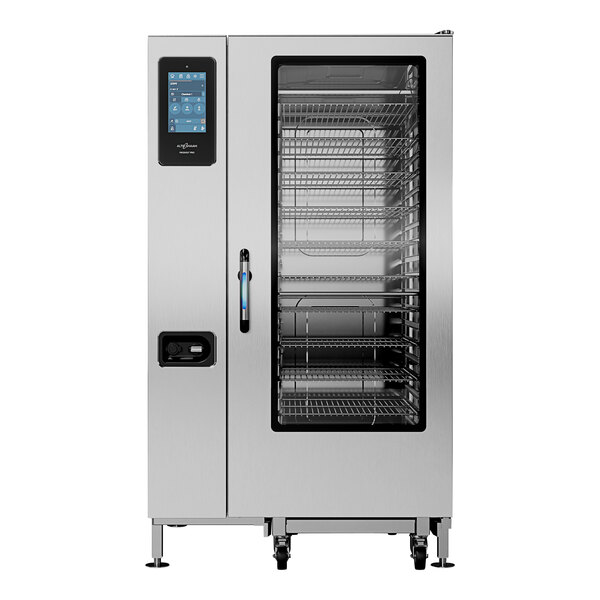 Cook a wide variety of food with the perfect cooking method using the Alto-Shaam 20-10G PRO Prodigi Pro liquid propane 20 pan half size combi oven. With this oven, do the work of a convection oven, kettle, steamer, and fryer. It has advanced features, accessories, and an intelligent, customizable control. This combi oven features steam and convection cooking modes to accommodate nearly any food, while the combination setting lets you thoroughly cook food much faster than steam or convection alone.