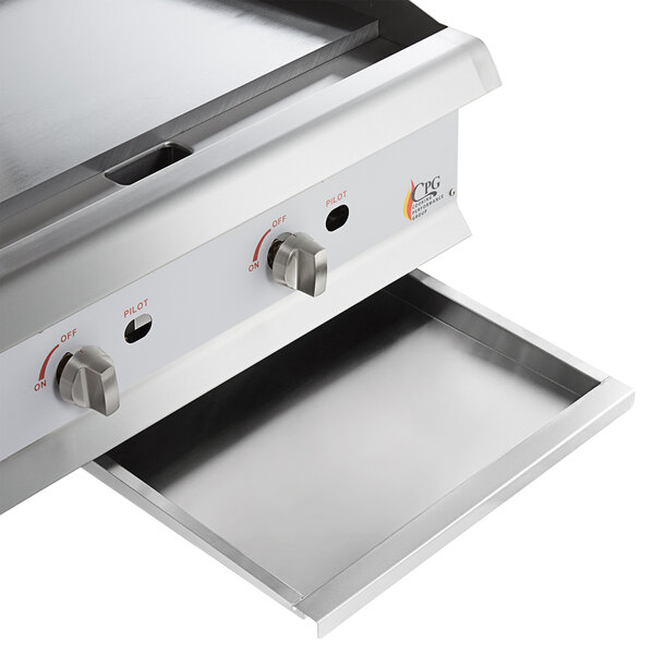 The Cooking Performance Group 351GM-CPG-48NL 48″ gas countertop griddle delivers a robust 120,000 BTU output, enabling high-volume cooking without slowing down.