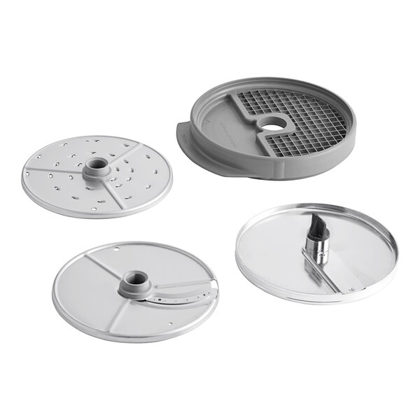 A 3/8″ (10 mm) dicing kit is perfect for making diced tomatoes, onions, and other fruits and vegetables. It includes both a dicing grid and slicing disc.